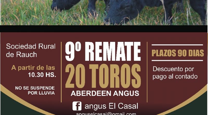 5.284 animales. Martillero Victor Sisinni. Categorías Gordo, invernada y cría 12.00 hs Plazo de pago 30, 45 y 60 días.